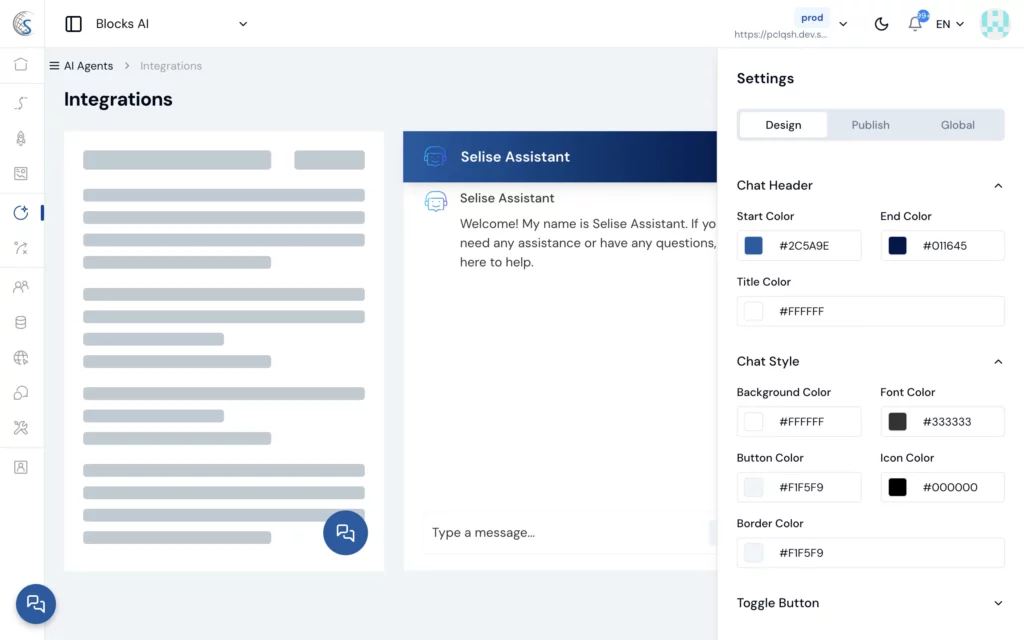 Publish your AI agent as an embedded widget or as a standalone chat interface. As simple as adding a button to your application or website.