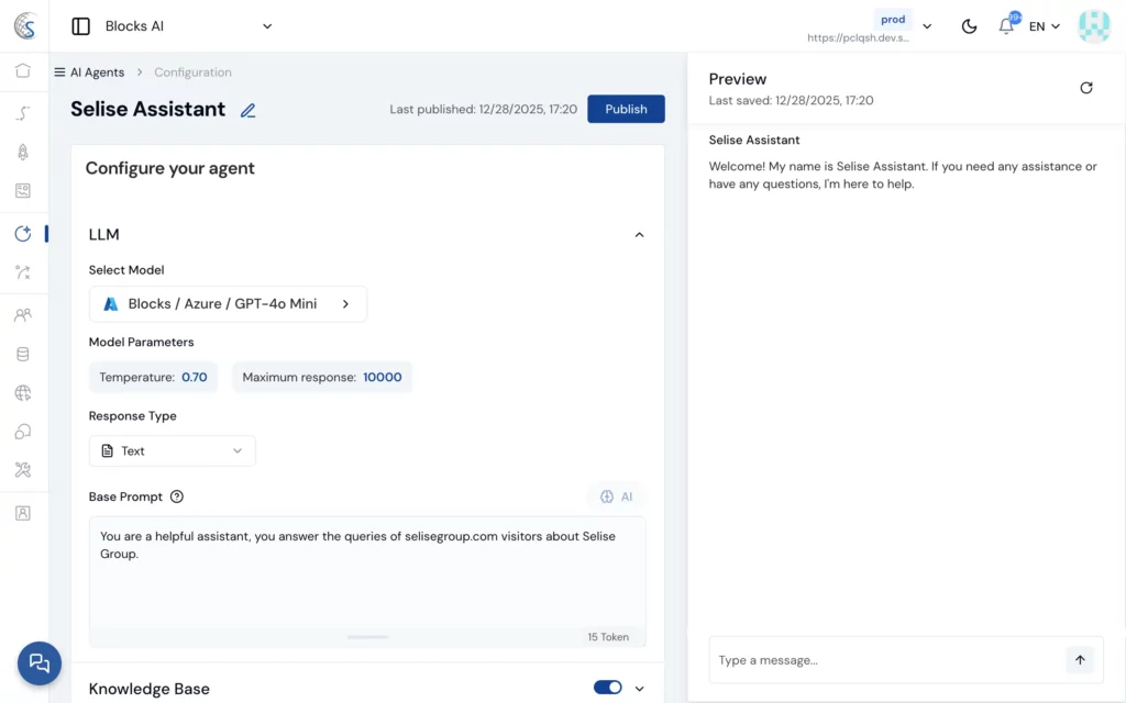 Different AI agents are built for different purposes; some require complex reasoning and planning, whereas others prioritize a more rapid response. With Blocks AI, choose the right Model for the right agent. Select from the list of Blocks provided models or the ones added by you, set the temperature, maximum response length, and set up the base prompt to reflect how you want the model to behave.